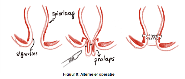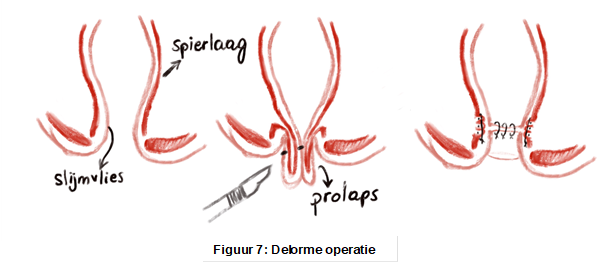 De ingreep verloopt via de anus, waarbij zoveel mogelijk van de uitstulpende darm wordt weggenomen. Gemiddeld wordt er zo een 7 á 15, maar soms ook tot 50 centimeter overtollige darm weggesneden en terug aan mekaar gehecht. Vaak gebeurt er ook een versteviging van de bekkenbodemspier om de continentie te verbeteren.